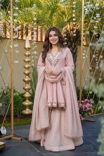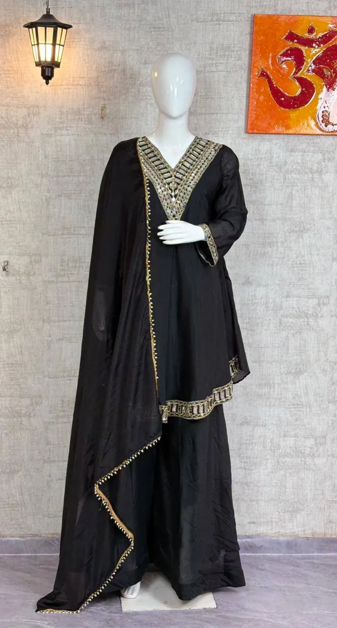 Top: Chinon Silk, Work- Real Mirror Work, Flare- 3 meter