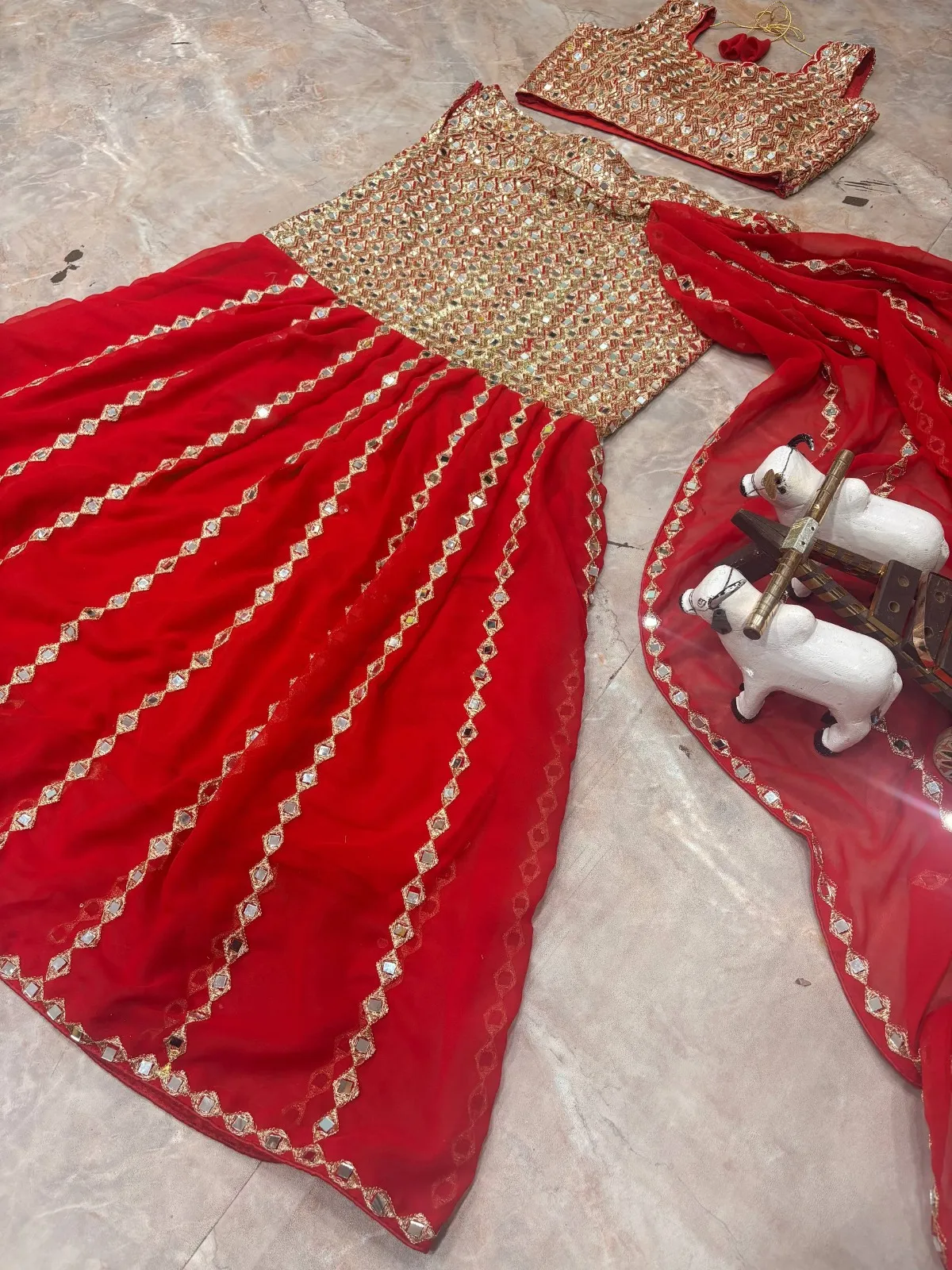 SBD 1812 Red Faux Georgette Mirror Work Ready to wear