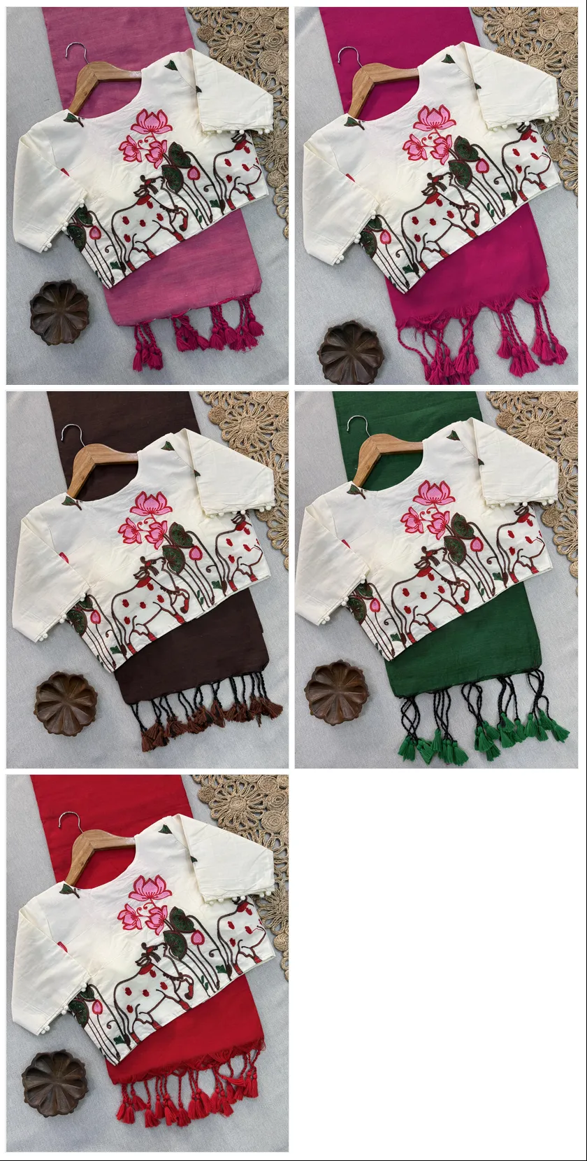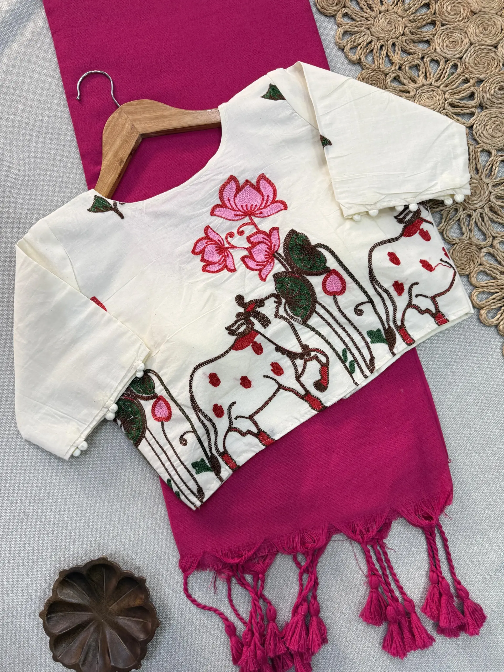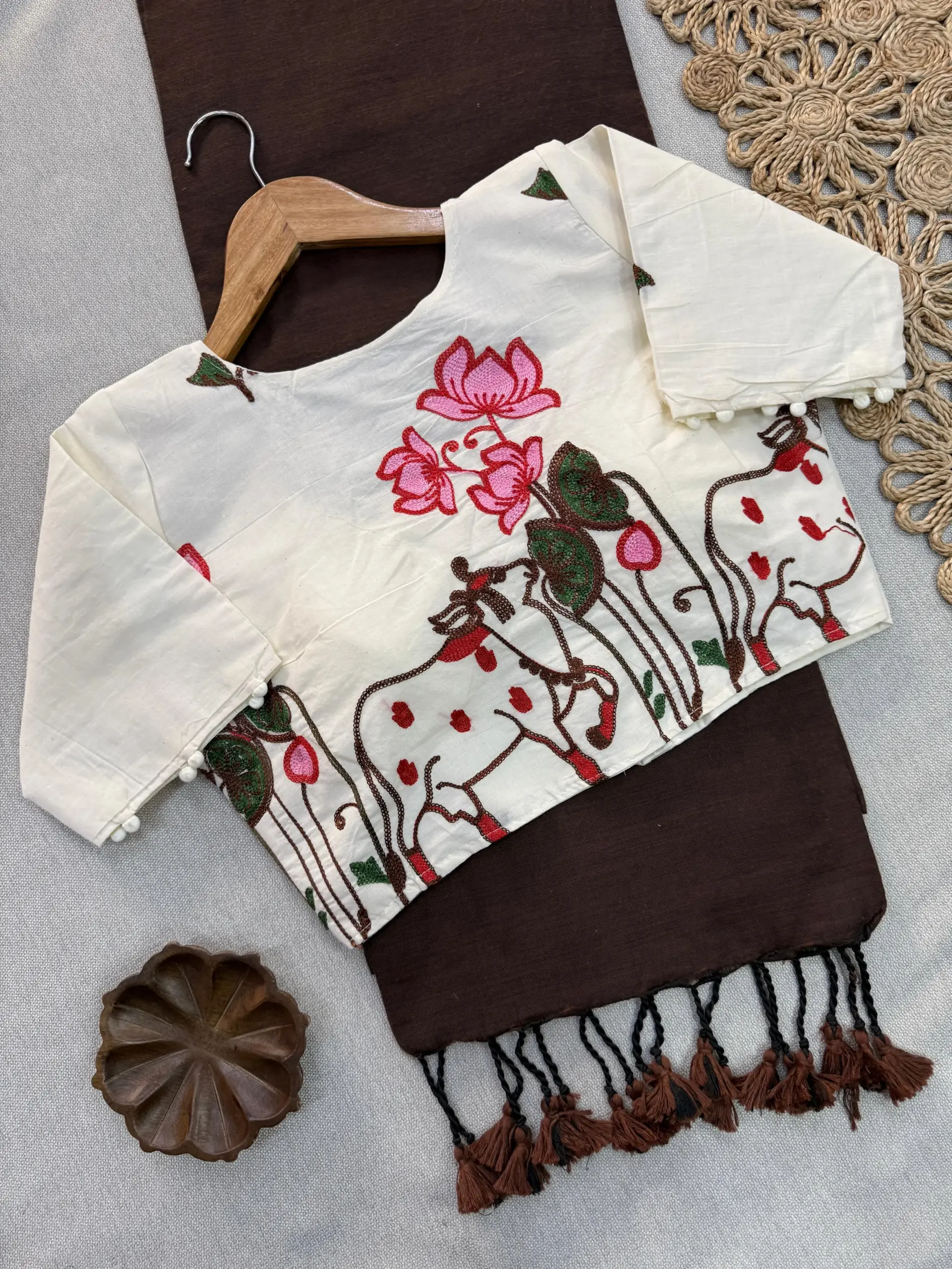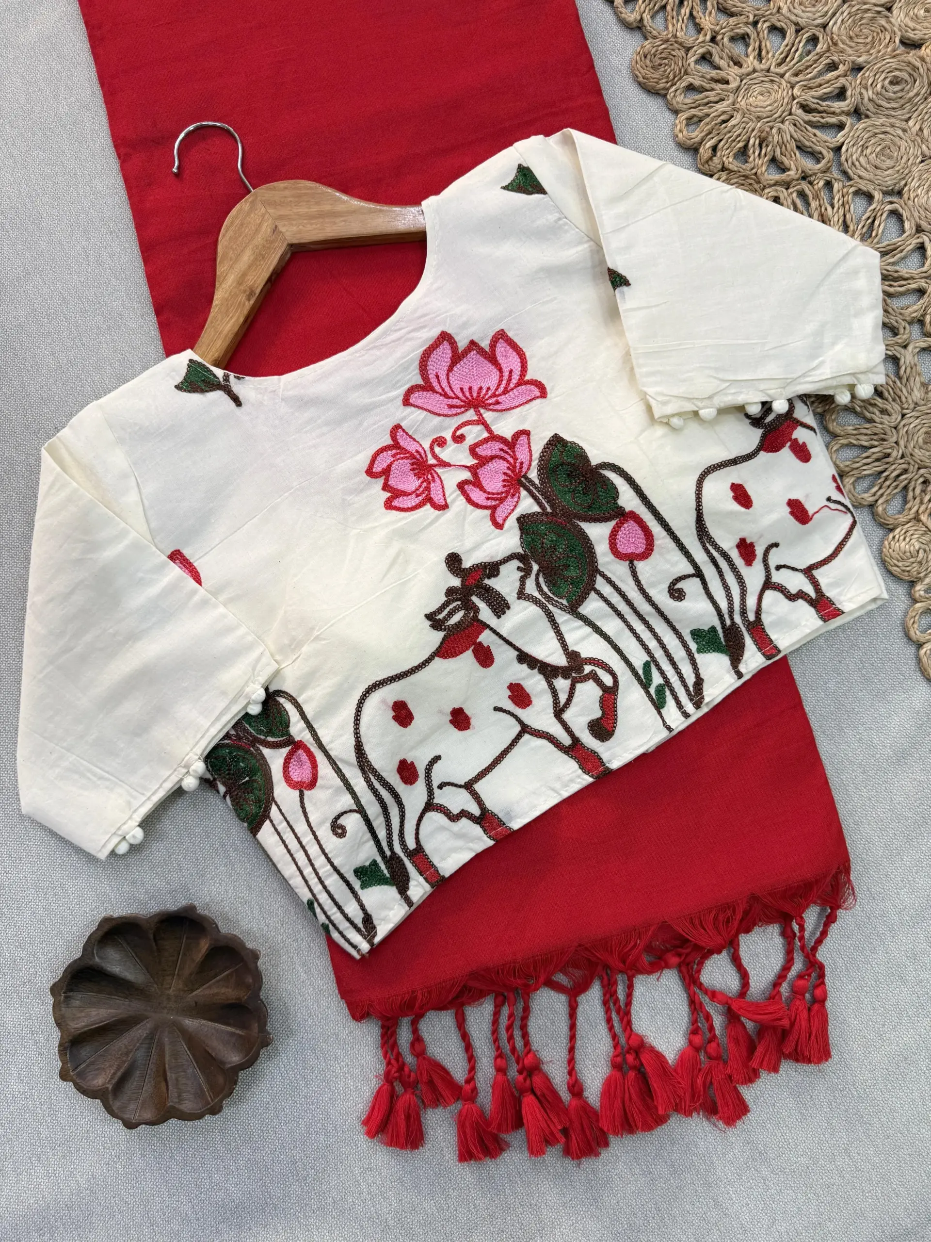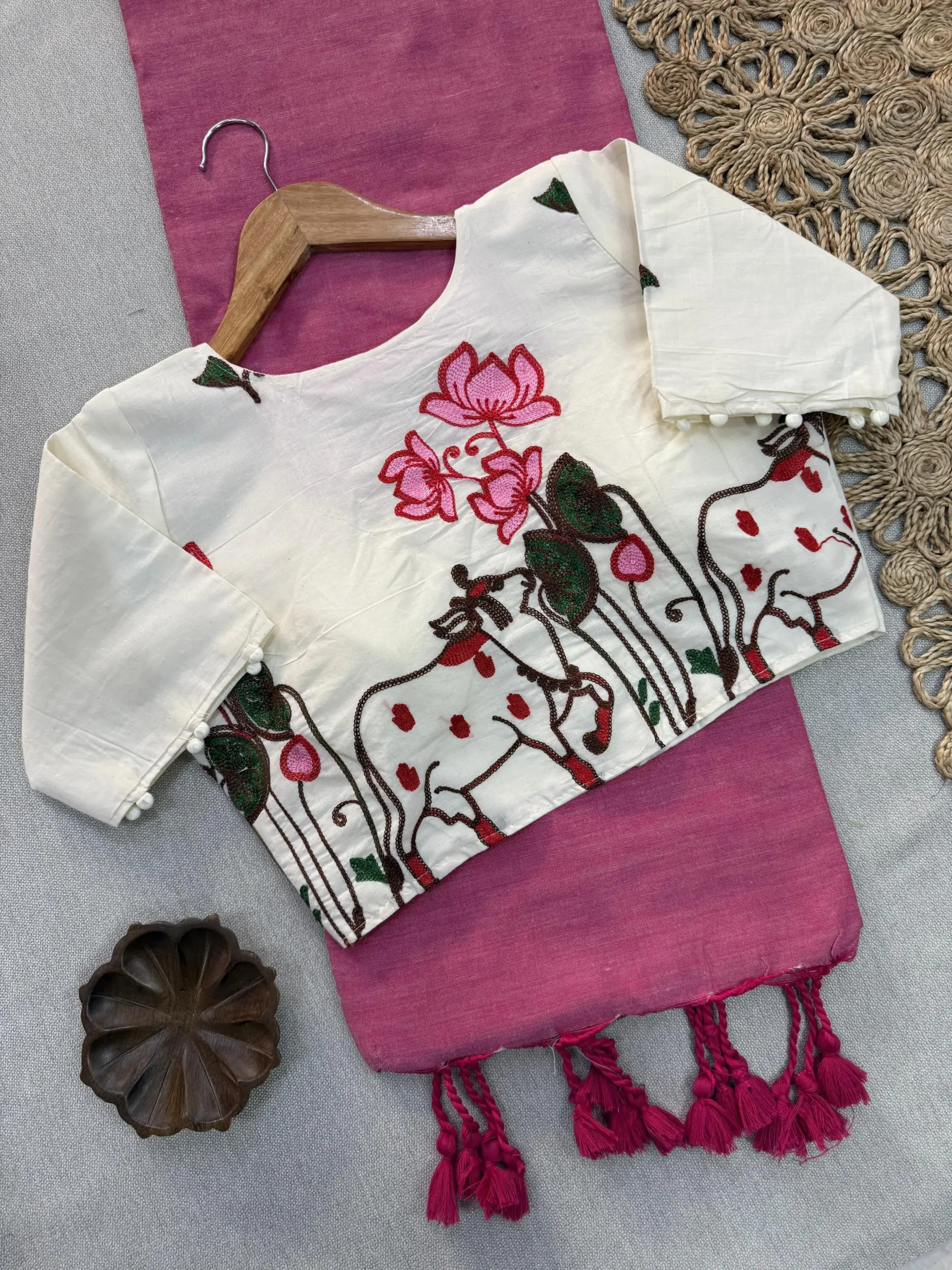 | Blouse | Embroidered Padded Fully Stitched Ready Made Khadi Cotton (Alterable From 38″ to 42″) |