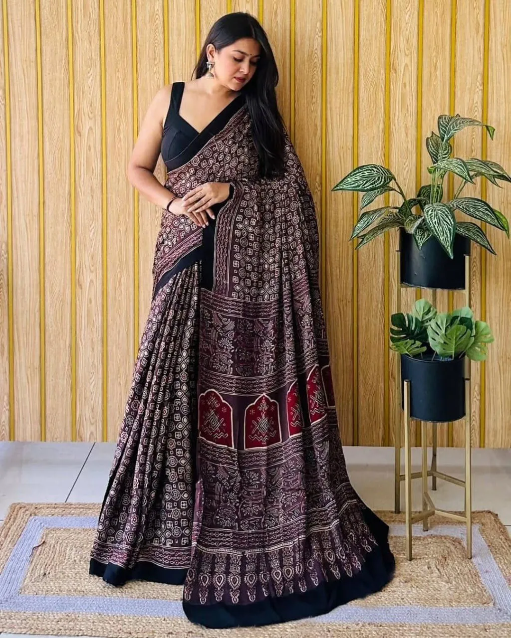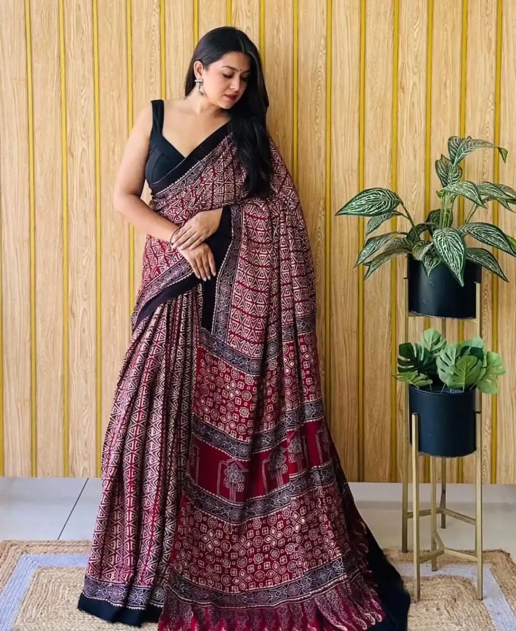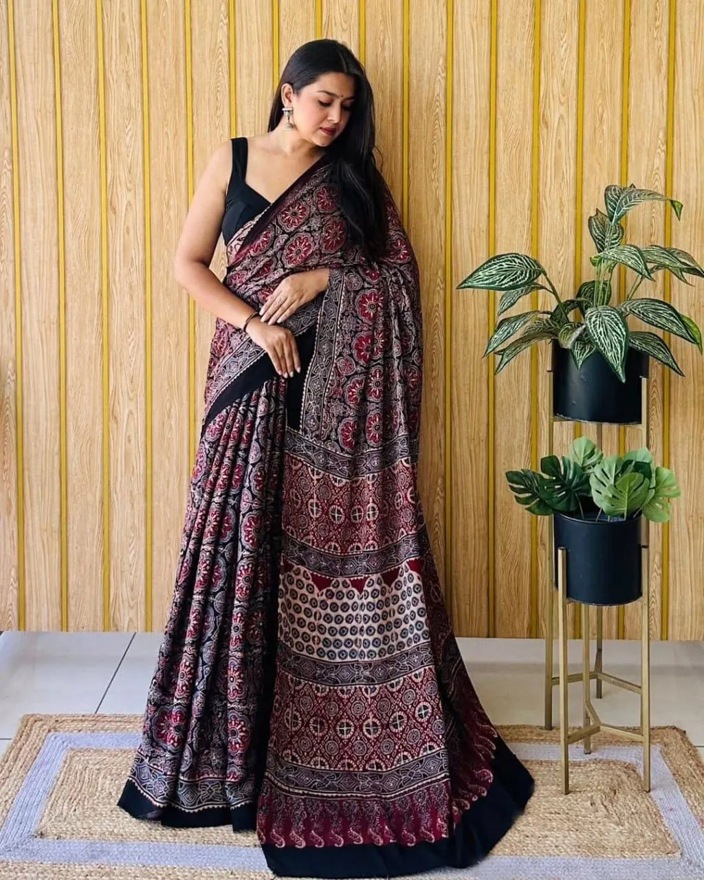 Sf Ajrakh Vol 1 Soft Japan Satin Ajrakh Printed Saree Collection