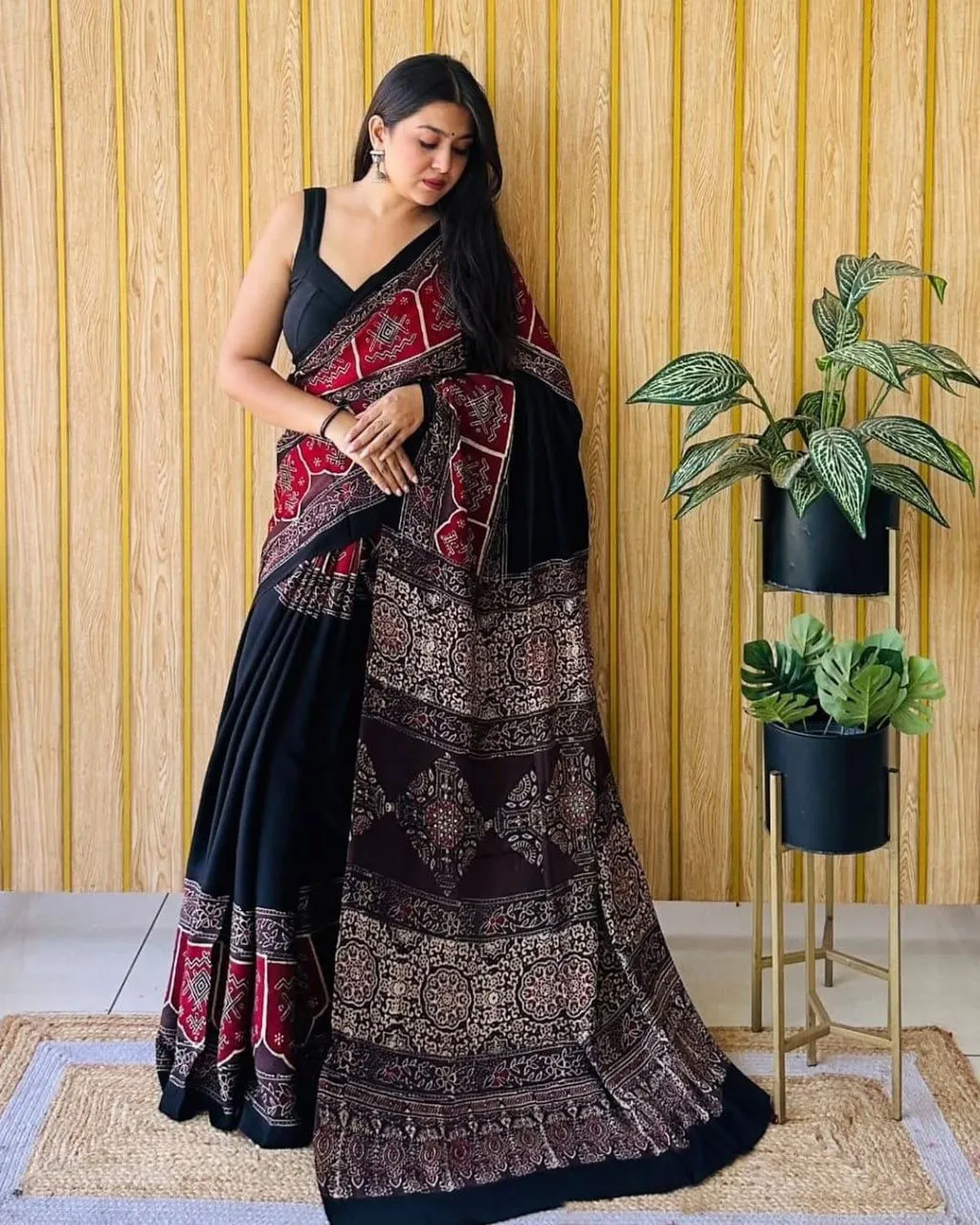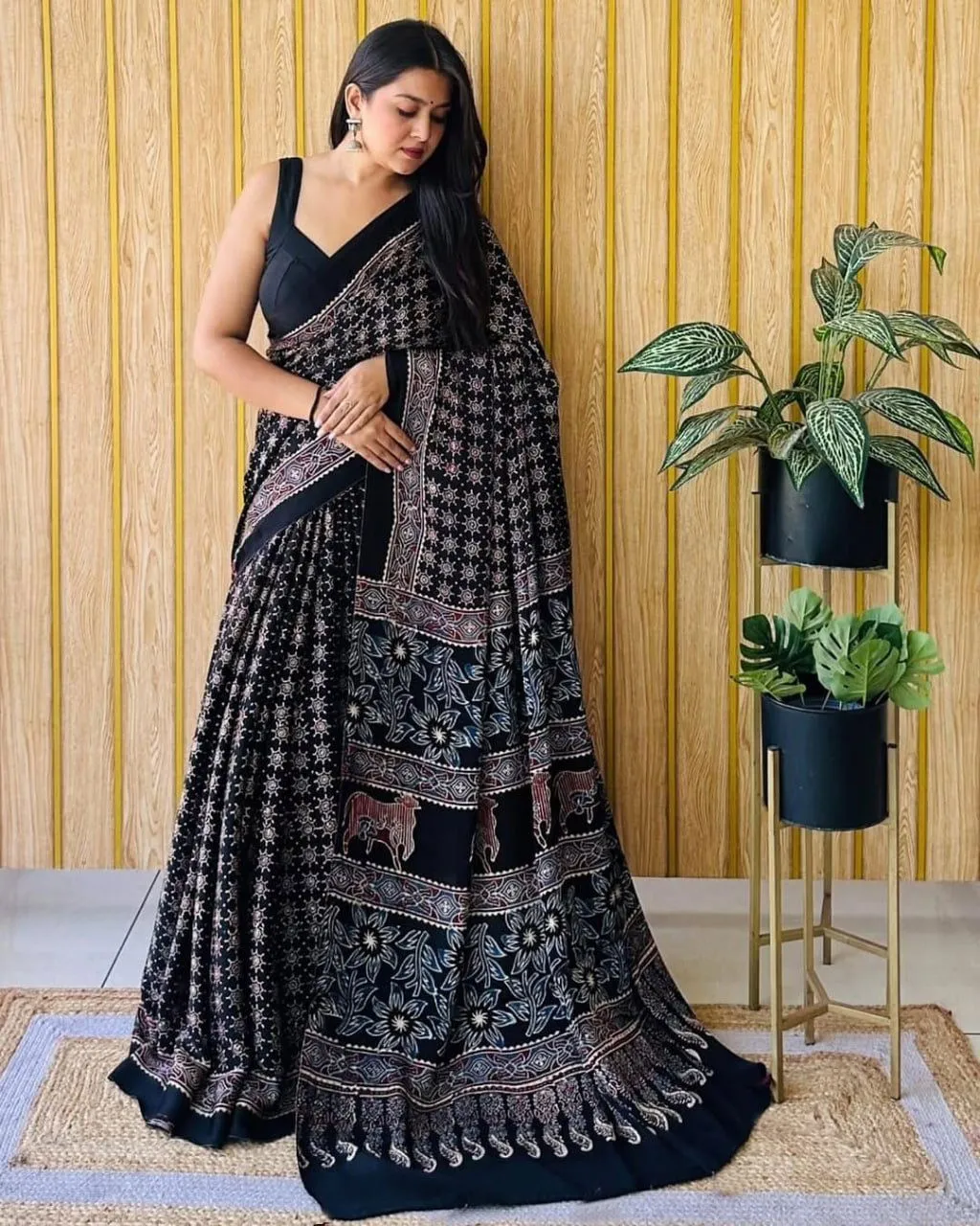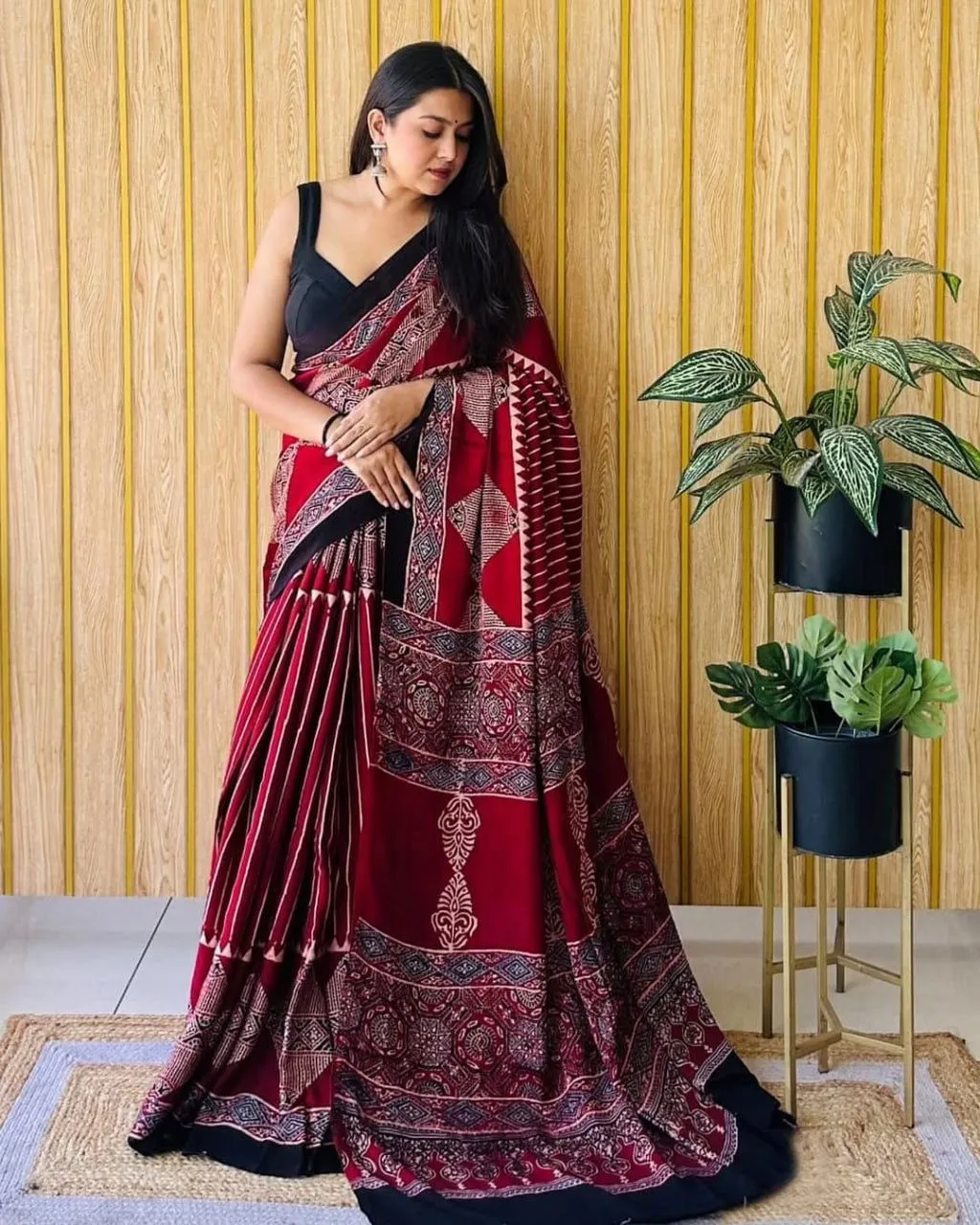 Sf Ajrakh Vol 1 Soft Japan Satin Ajrakh Printed Saree Collection