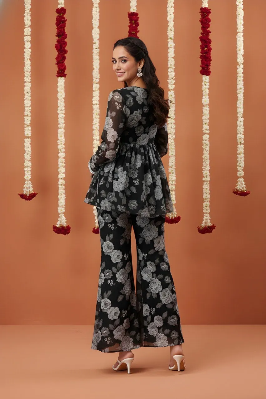 TopGeorgette, Pattern: Printed, Neck- Round- neck, Sleeve Length- Full Sleeves, Sleeve Styling- Regular Sleeves, Length- Hip Length, Bust- 2XL(44), Length- 2XL(30)