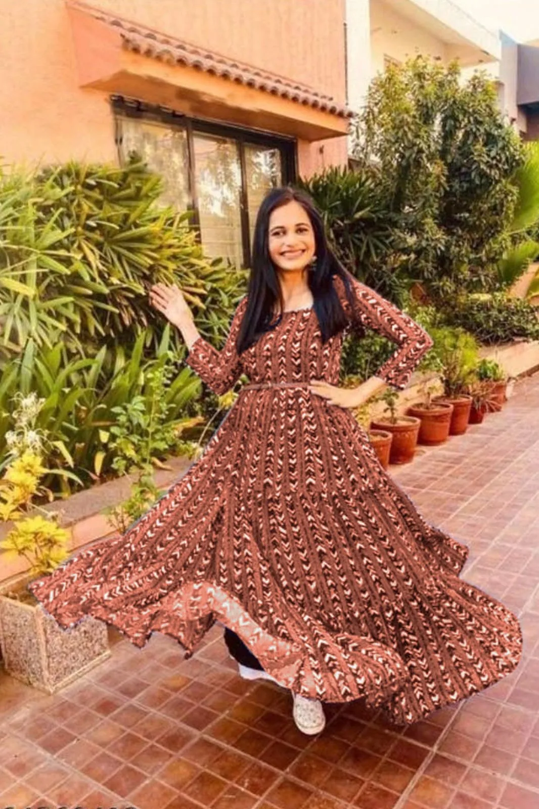 | Gown | Georgette, Pattern- Printed, Length- Regular, Neck- Square neck, Sleeve Length- Long sleeve, Stitch- full stitching, Bust- L(40), XL(42), 2XL(44), Length- L(50), XL(50), 2XL(50) |