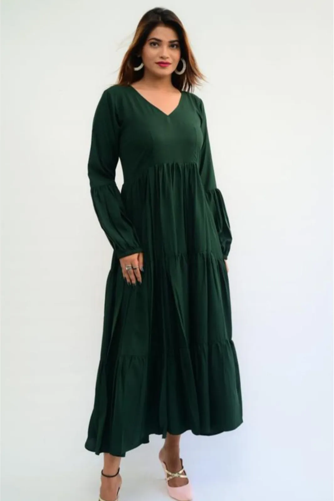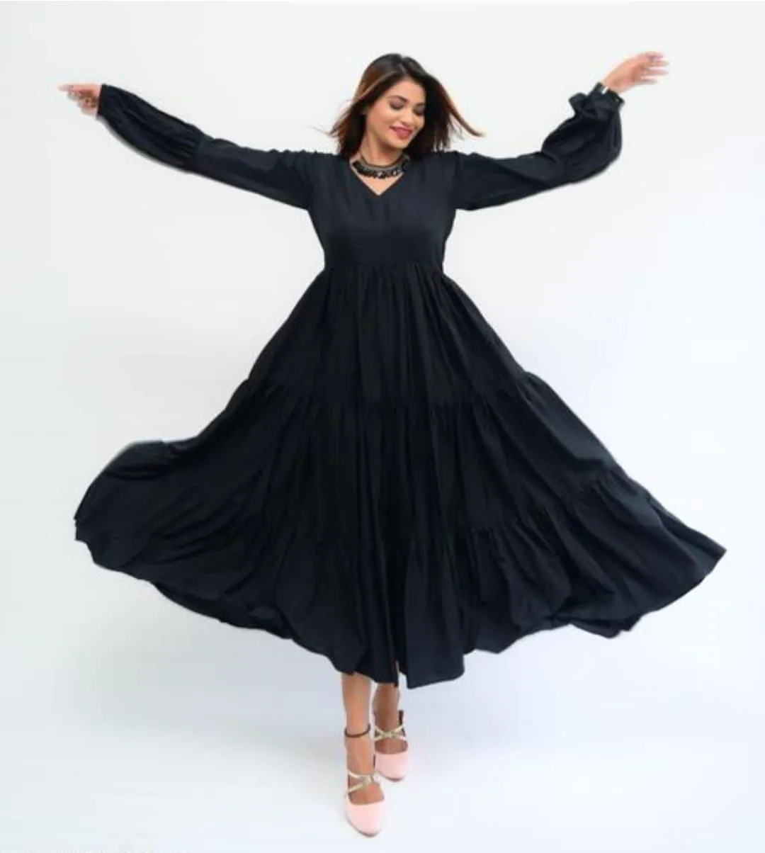 | Top | Delta silk, Pattern- Solid, Length- Regular, Neck- V- neck, Sleeve Length- Full sleeve, Sleeve style- puff sleeve, Bust- M(38), L(40), XL(42), 2XL(44), Length- M(48), L(50), XL(50), 2XL(50) |