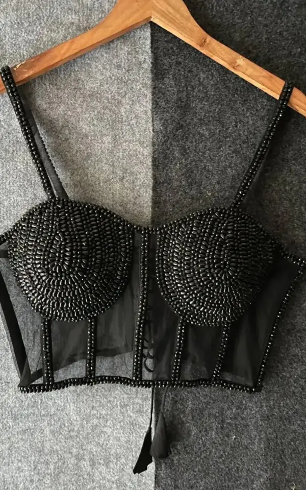 Ruhi Beautiful Black Pearl Moti Spaghetti Blouse
