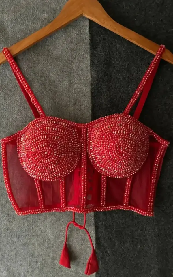 Ruhi Beautiful Red Pearl Moti Spaghetti Blouse