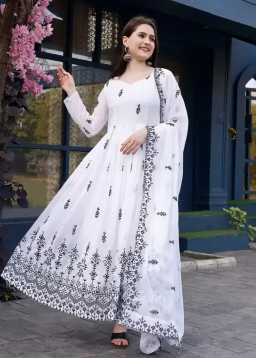 WMN 4505 Organza Floral Printed Frock Kurti