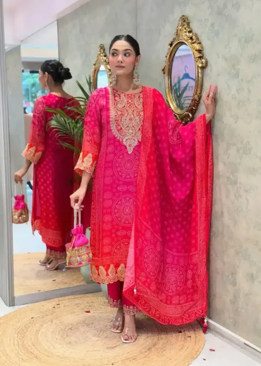 Beauty J 1011 Red Roman Silk Readymade Dress