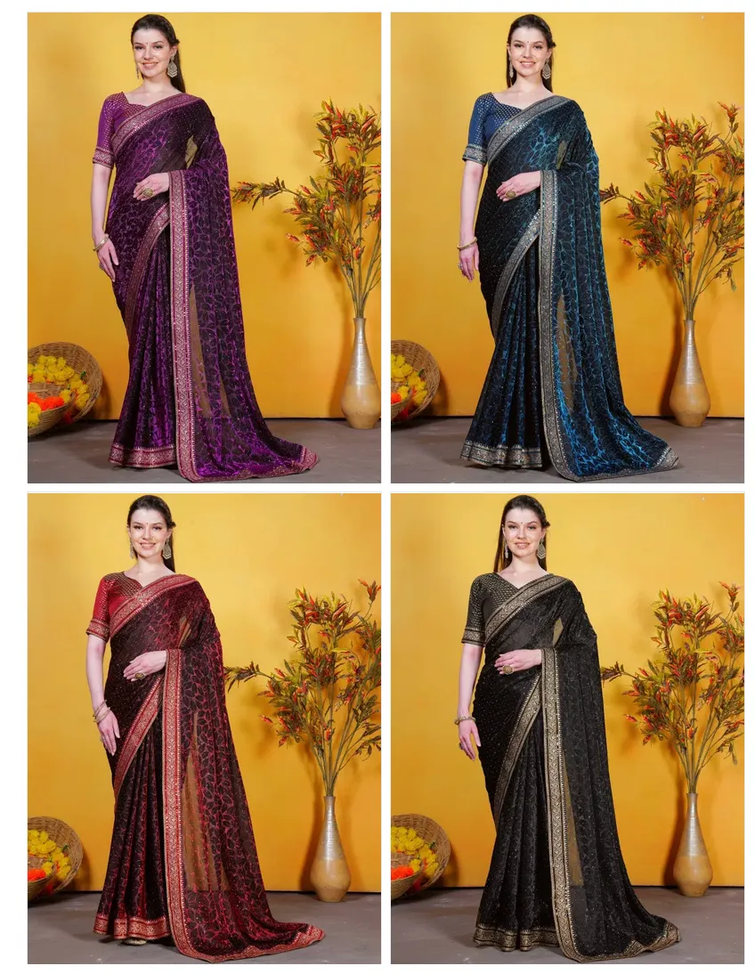 Swarosk Delta Paan Lycra with Lace Border Party Wear Saree Collection