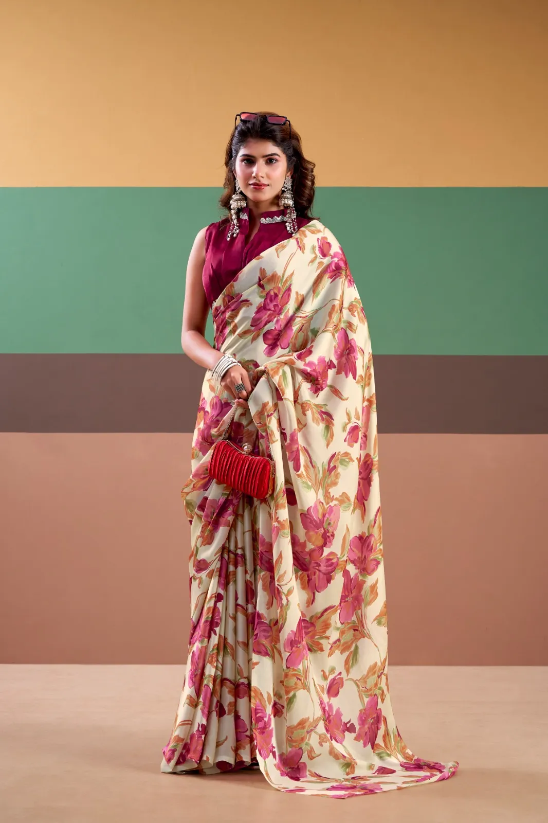 Taraa L 7008 Satin Silk Floral Printed Party Wear Saree Collection