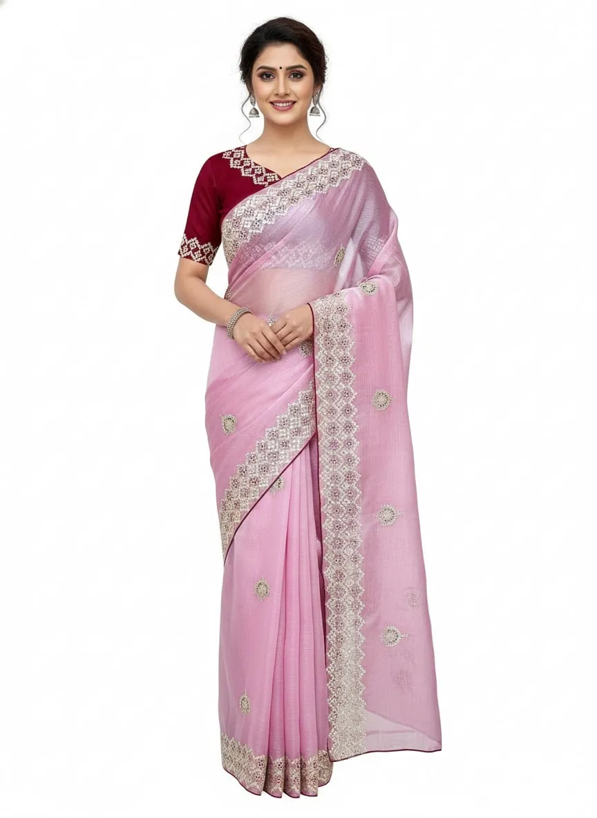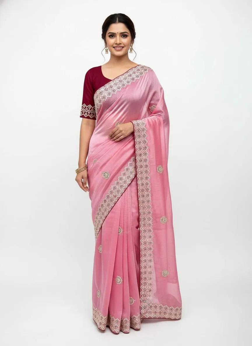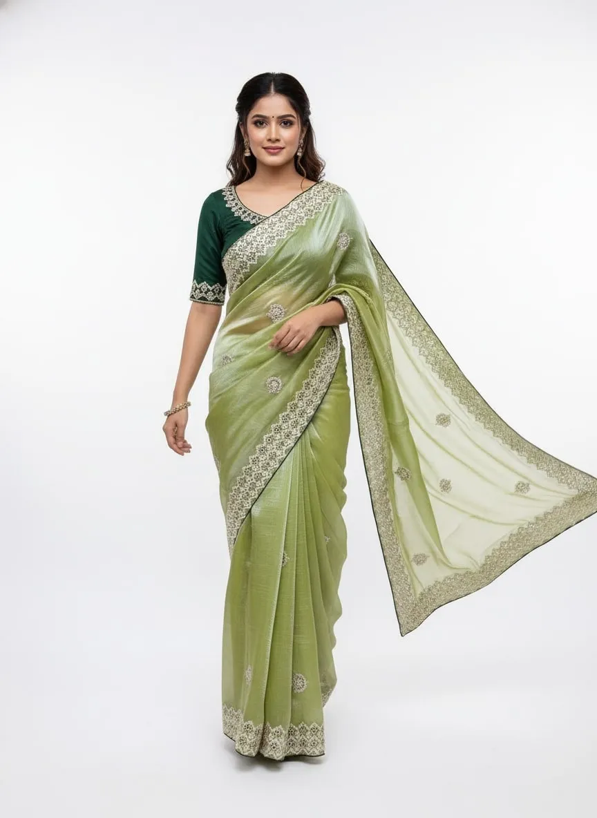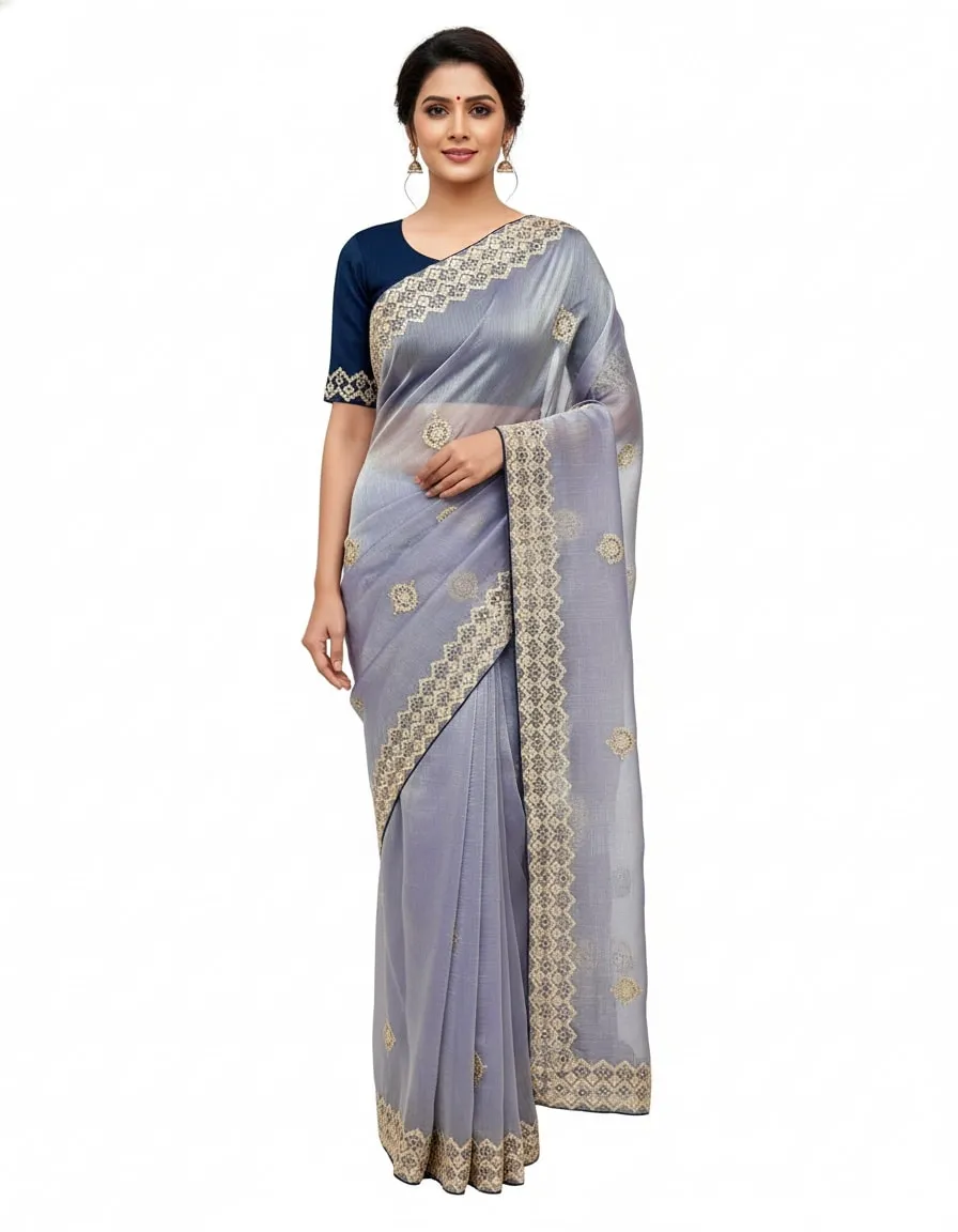 SareePURE JIMMY CHOO, DESIGN- PURE JIMMY CHOO MULTI THREAD EMBROIDERY HEAVY WORK AND PAIPING BORDER AND C-PALLU WORK, LENGTH- 5.50