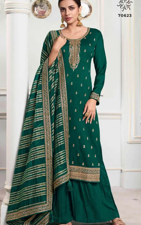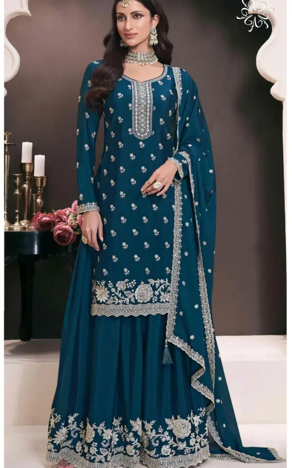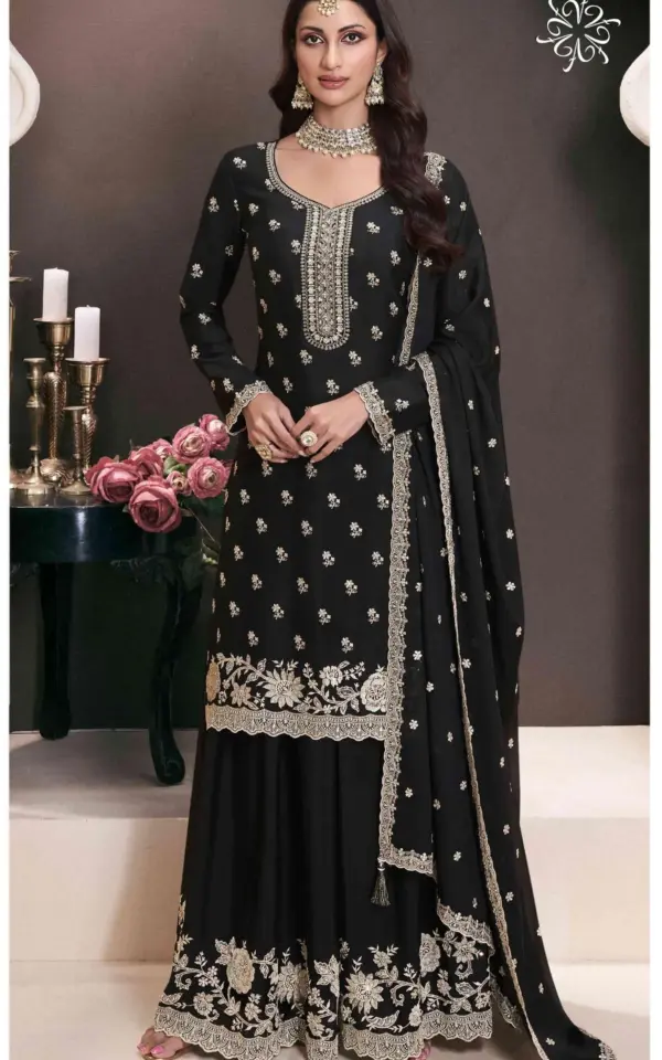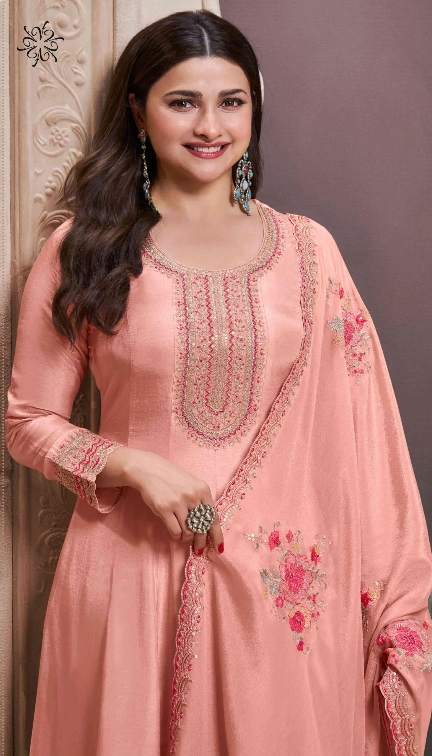 | Details | Thread Emb Moonga Silk Top, Santoon Bottom, Multy Thread Emb Silk Georgette Dupatta ( Semi Stitched Product ) |