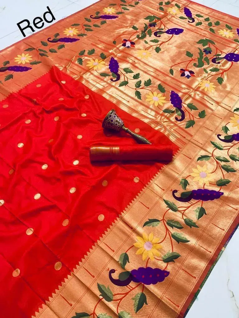 | Saree | Pure Soft Kanchivram Paithani Silk Original Pure Zari Brocket Design and Minakari Border and Heavy Mina Zari Weaving |