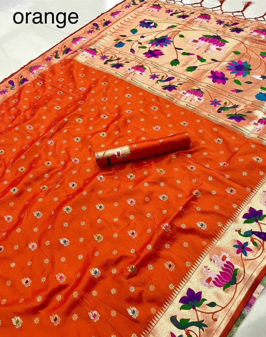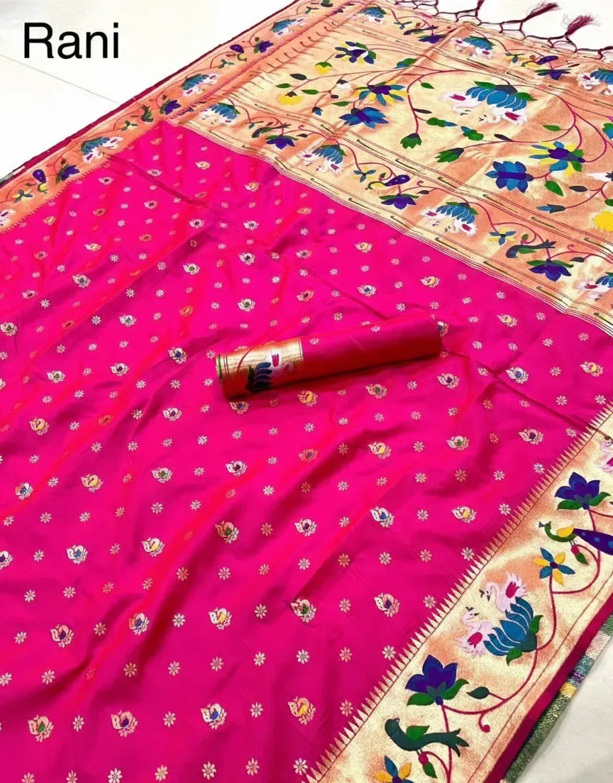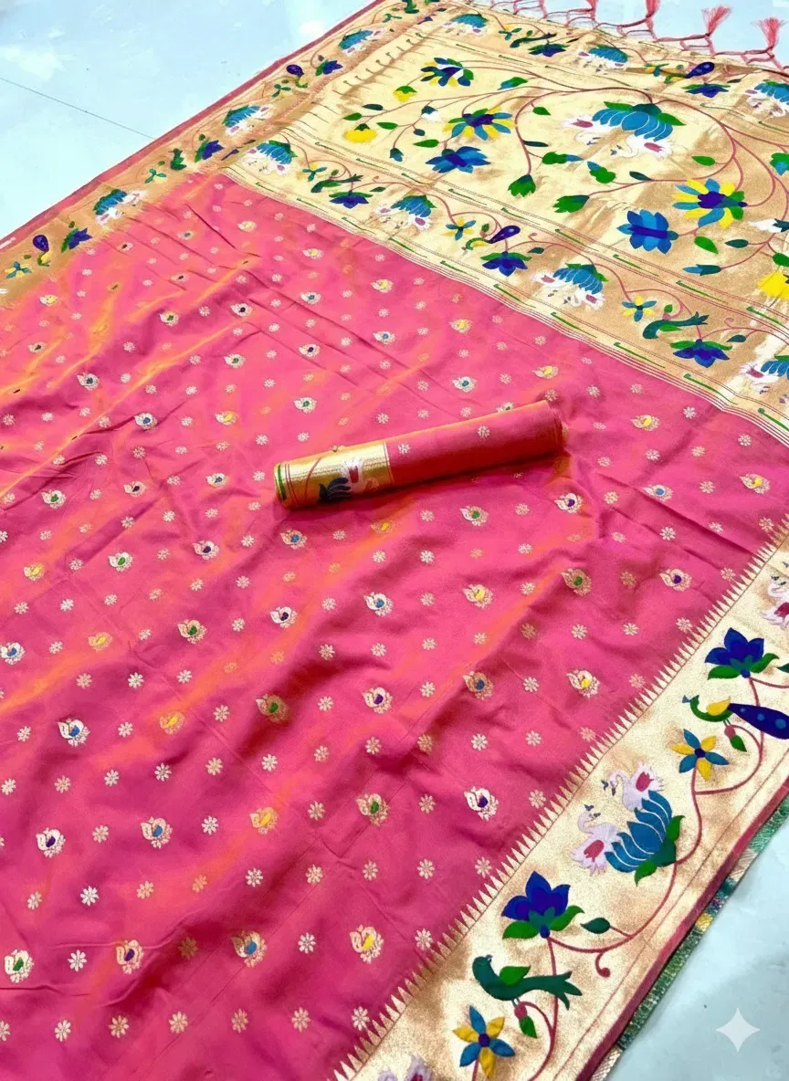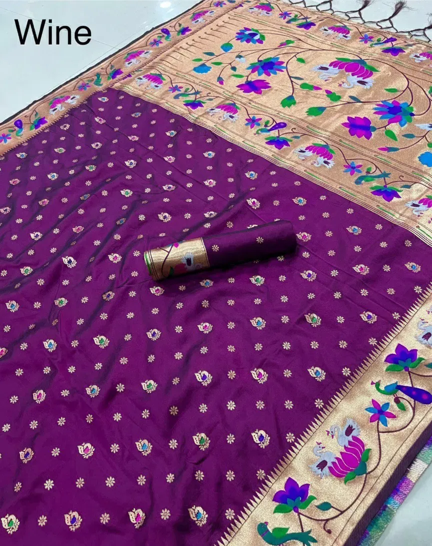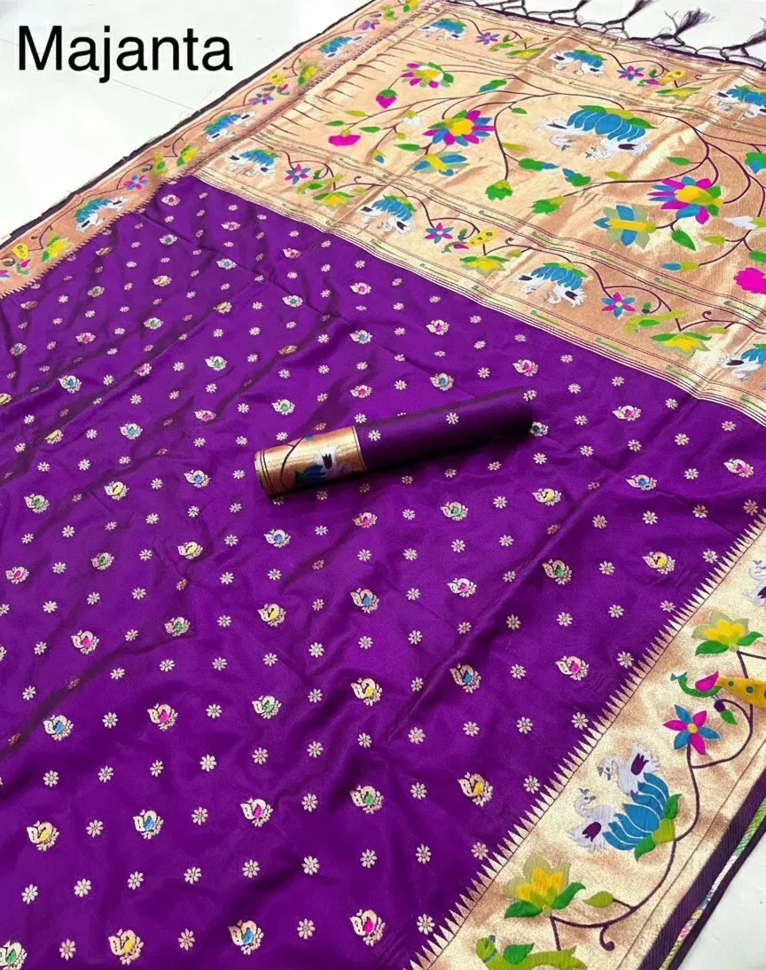 | Saree | Pure Soft Kanchivram Paithani Silk Original Pure Zari Weaving and Minakari Peacock Border Heavy Mina Zari Weaving Pallu |