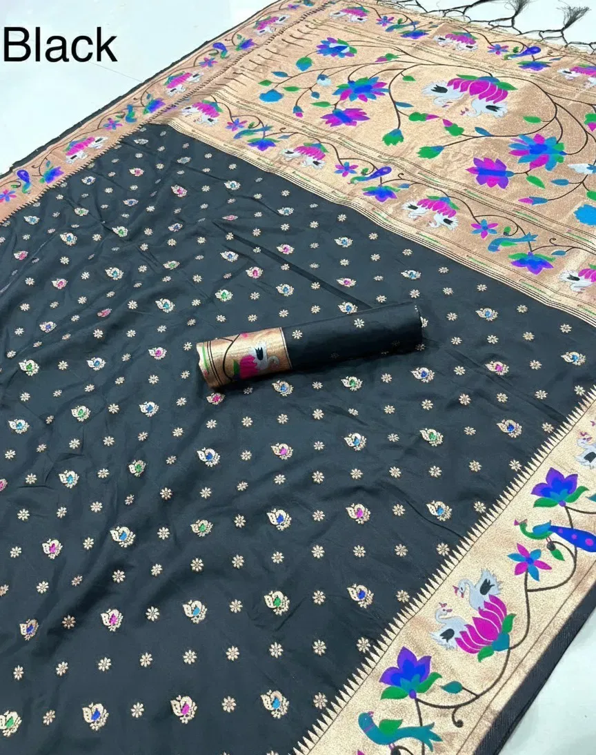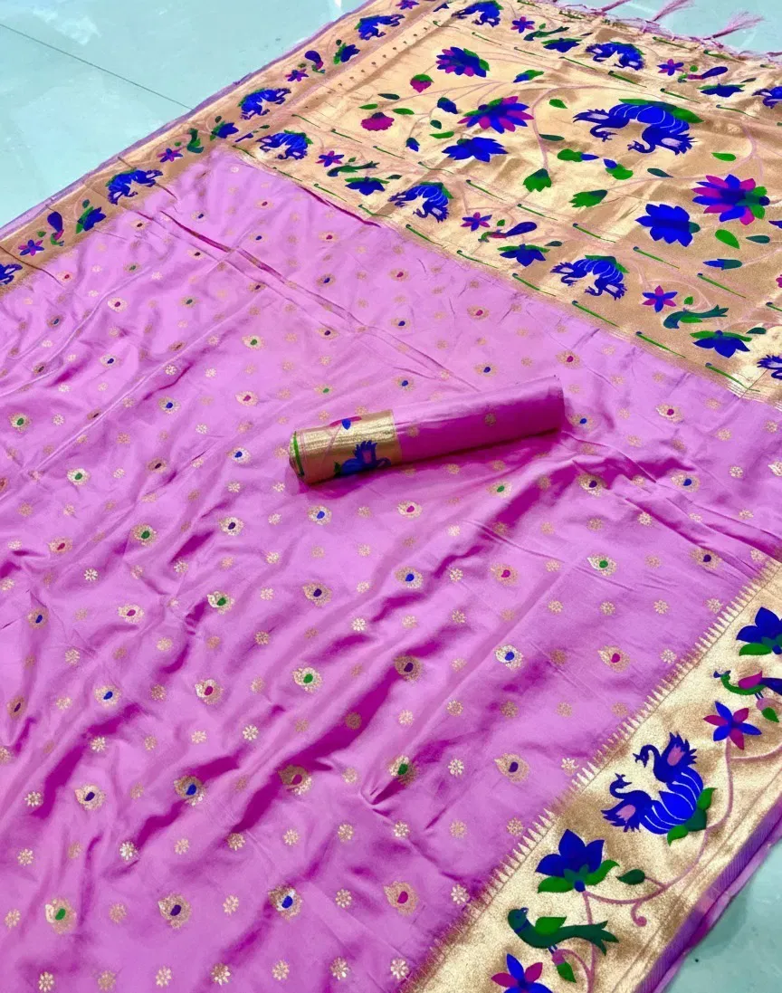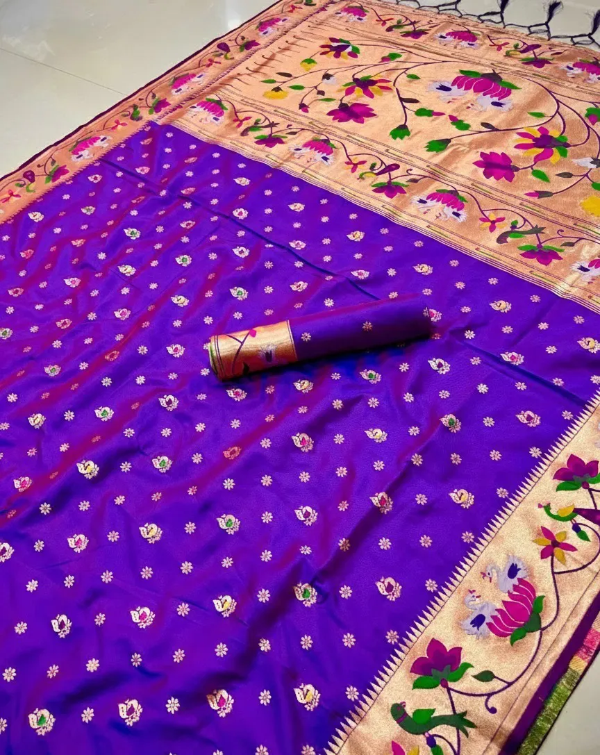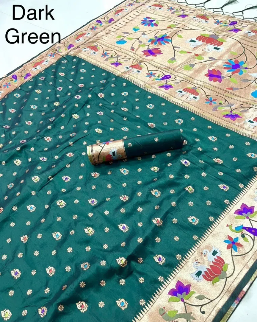 | Saree | Pure Soft Kanchivram Paithani Silk Original Pure Zari Weaving and Minakari Peacock Border Heavy Mina Zari Weaving Pallu |