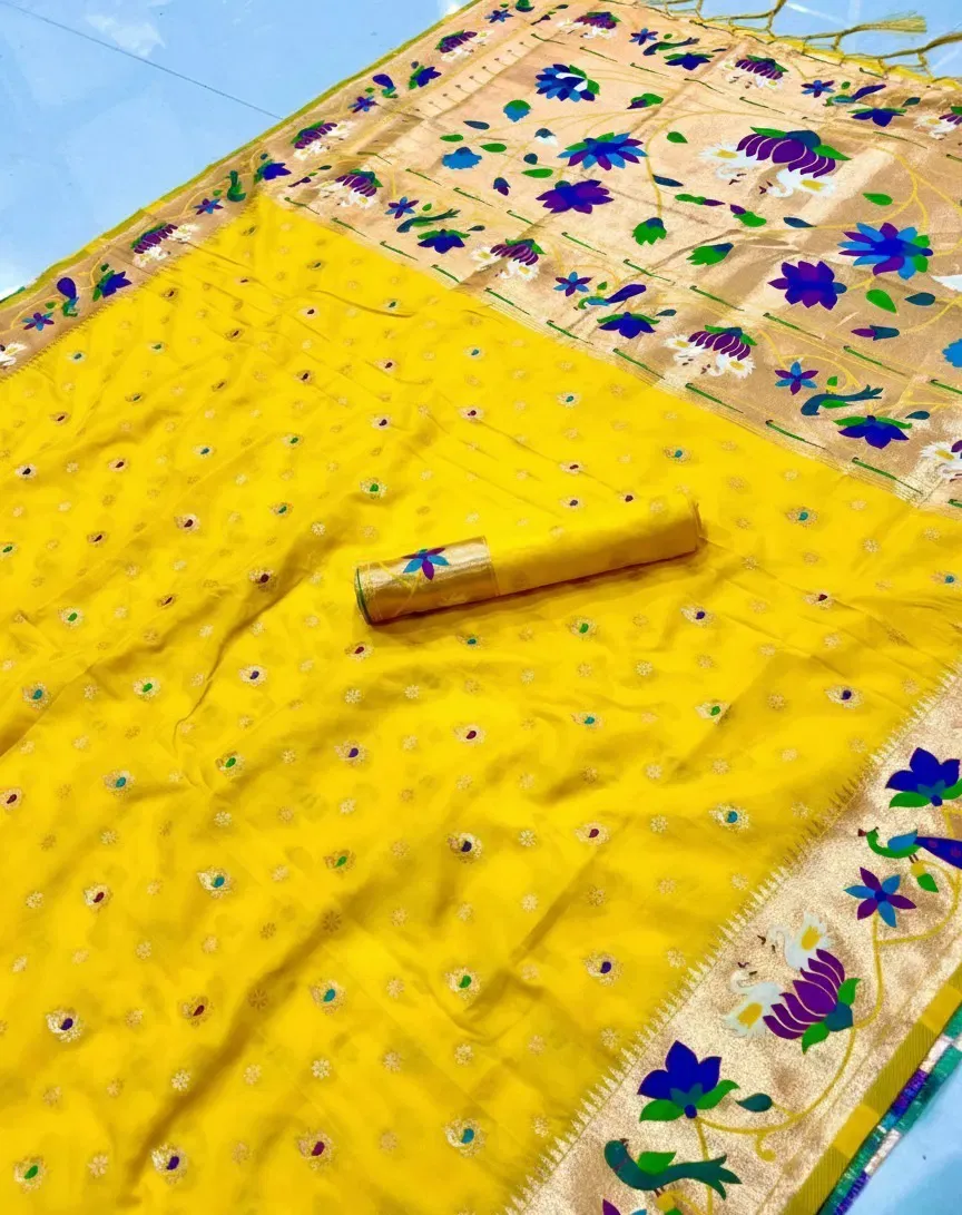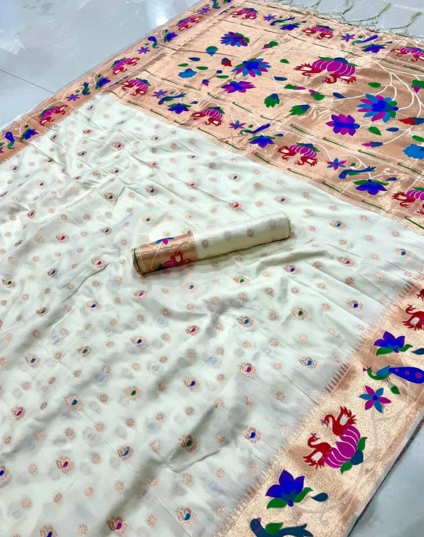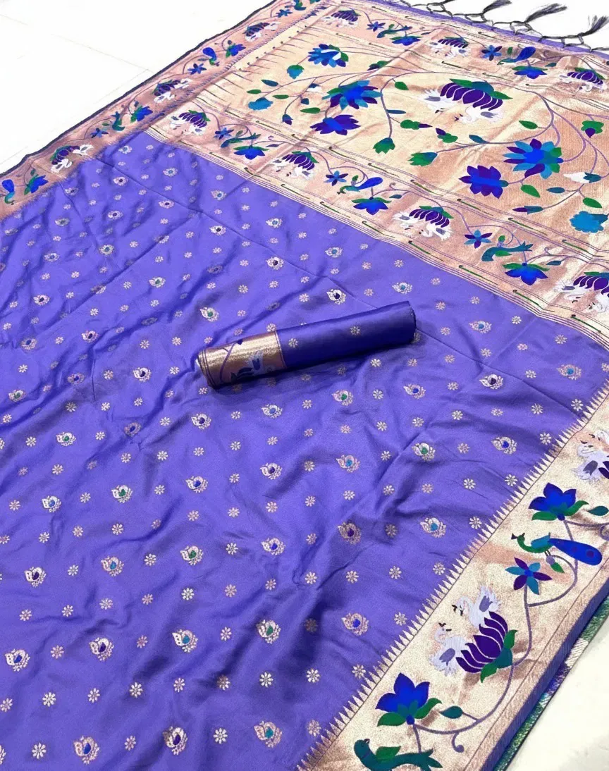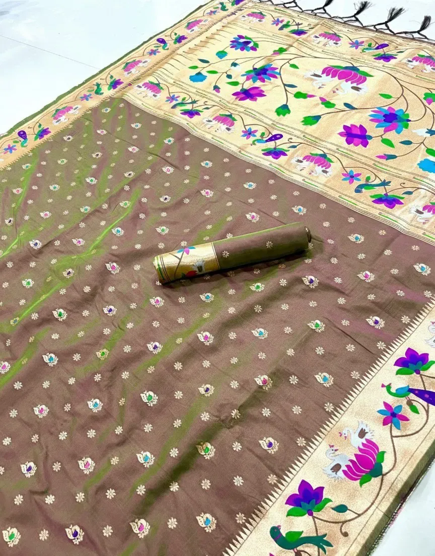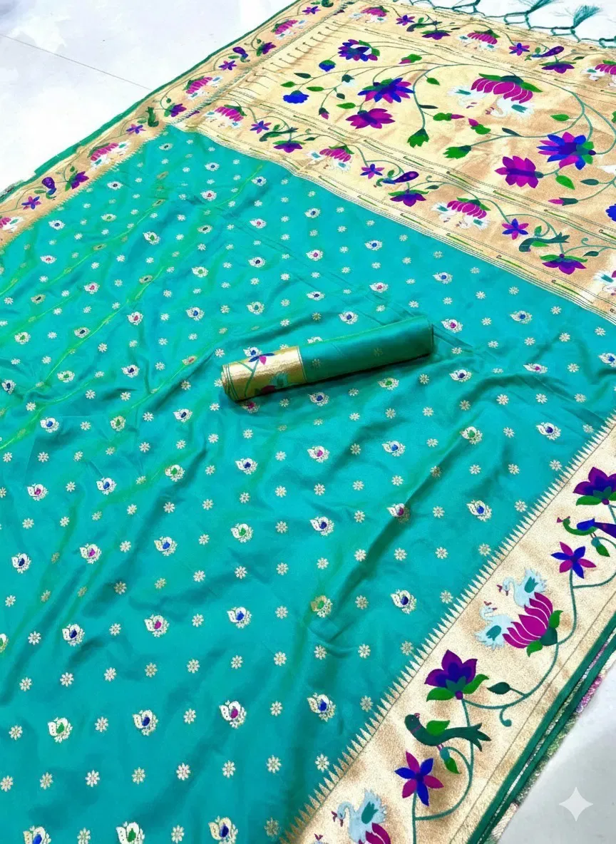 | Saree | Pure Soft Kanchivram Paithani Silk Original Pure Zari Weaving and Minakari Peacock Border Heavy Mina Zari Weaving Pallu |