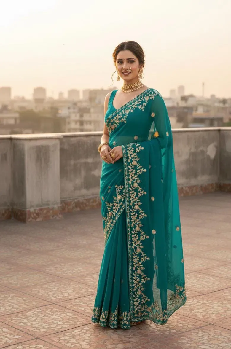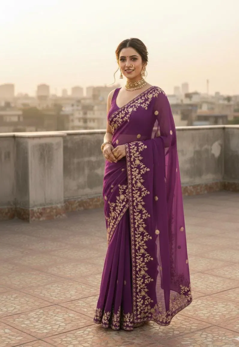 Vt 827 T Fandy Chiffon Embroidery Worked Fancy Saree Collection