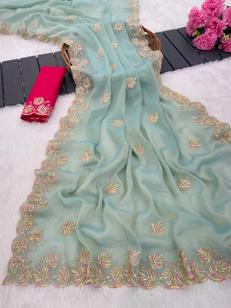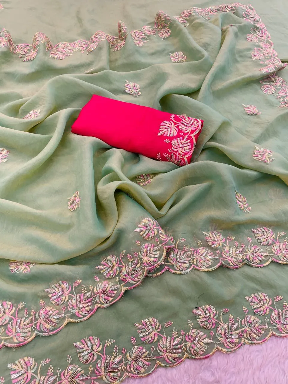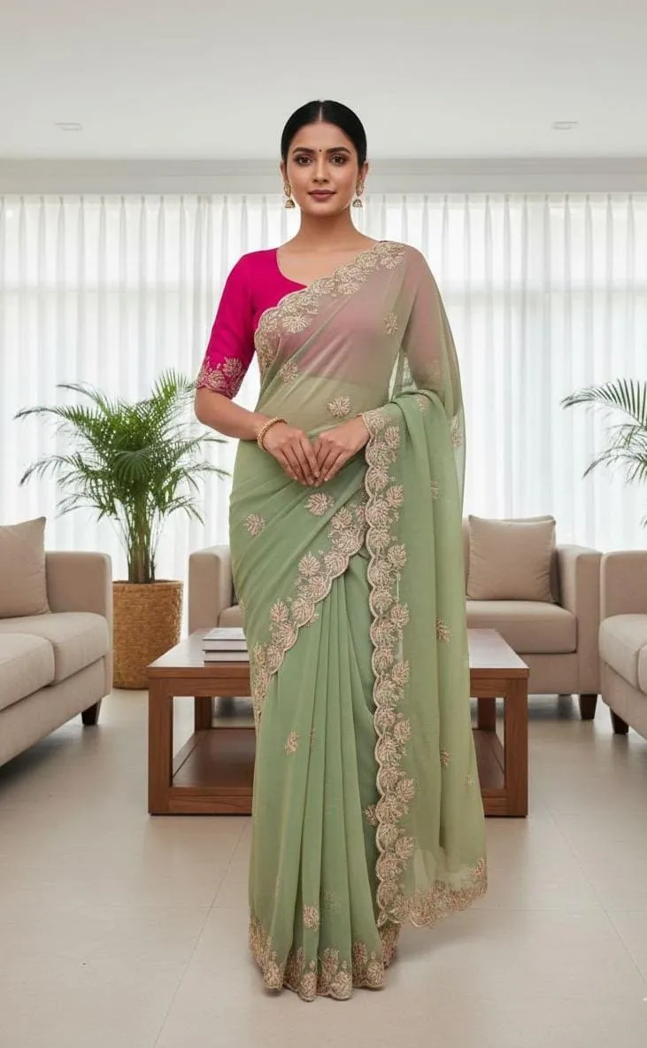Vt 829 T Moss Chiffon Multi Thread Worked Fancy Saree Collection