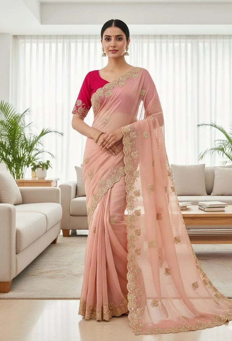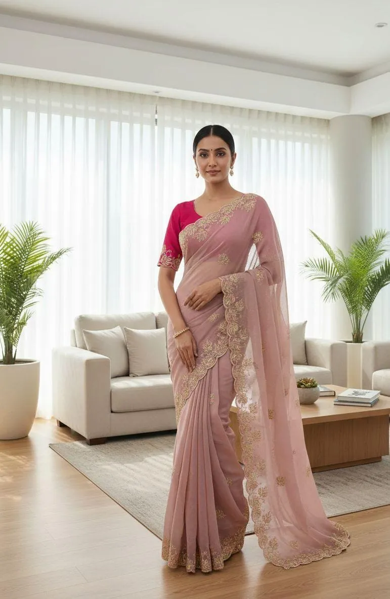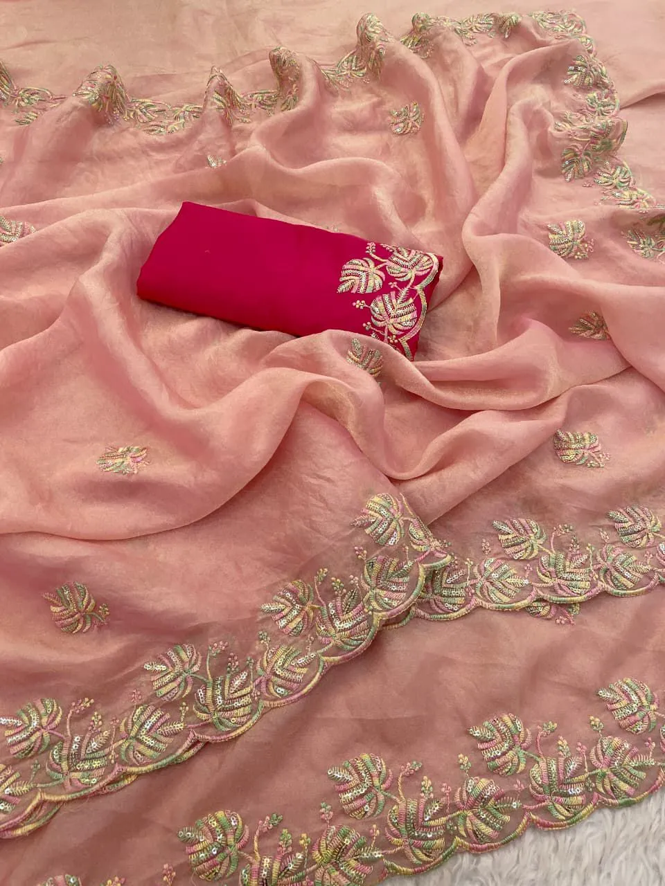 Vt 829 T Moss Chiffon Multi Thread Worked Fancy Saree Collection