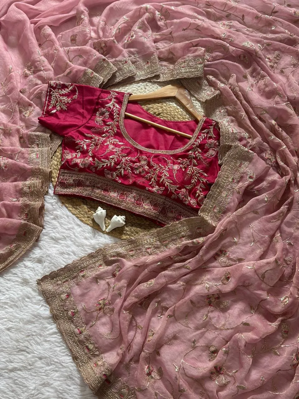 SareeSOFT NC SATIN, EMBROIDERY WORK ALL OVER WITH ZARI WORK WITH THRADE MEENA CUT WORK (UNSTICH BLOUSE Price -1349)