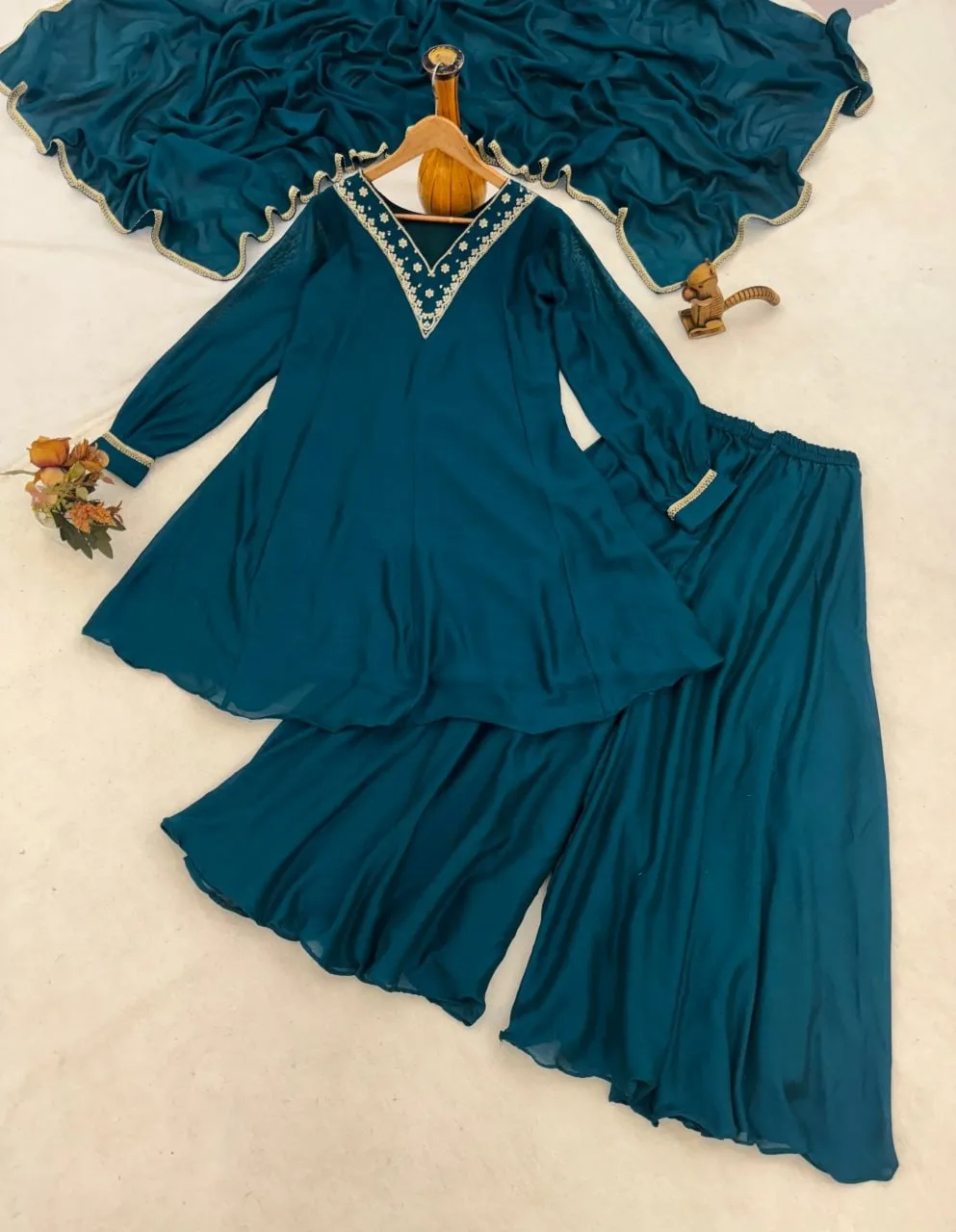 | Top | Vichitra CXP, Work : Embroidered Neck With Lace Border on Sleeves, Sleeve Length : 22”, Height: 36”, Inner : Micro Cotton, Chest :38”(M)(Supported up to L 40”), 42”(XL)(Supported up to XXL 44) |