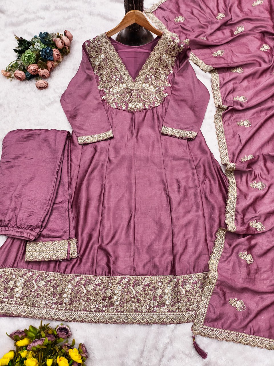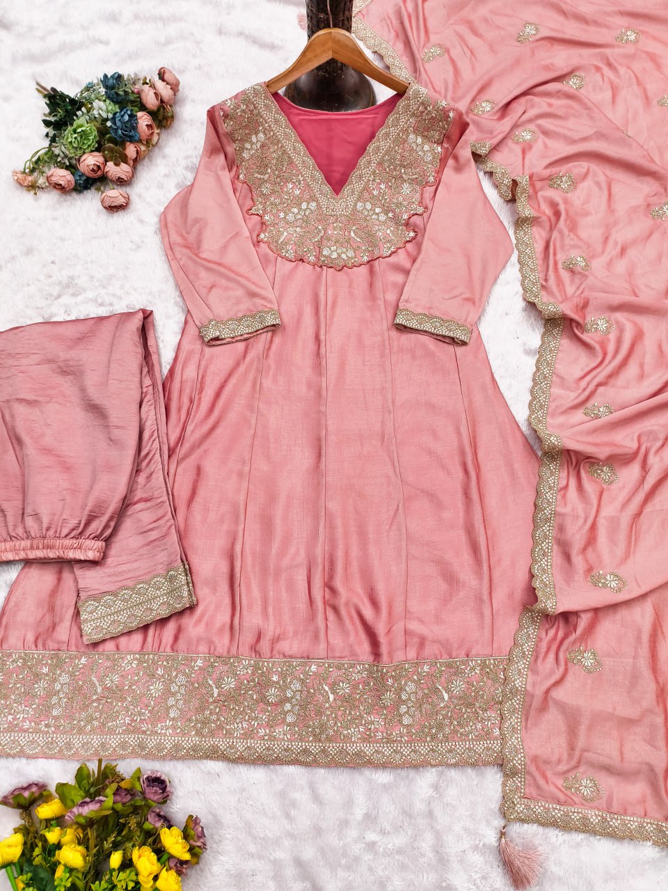 | Bottom | Heavy Premium Silk With Heavy Embroidery Sequence Codding Work, INNER-Heavy Crepe Silk |